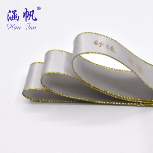 Celebrate birthdays in style with our High-Density Gold Foil Satin Ribbon – customized with a printed “Happy Birthday” message.